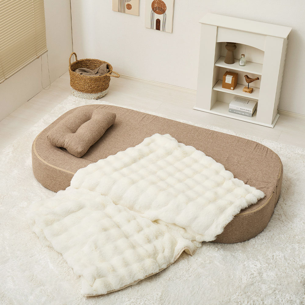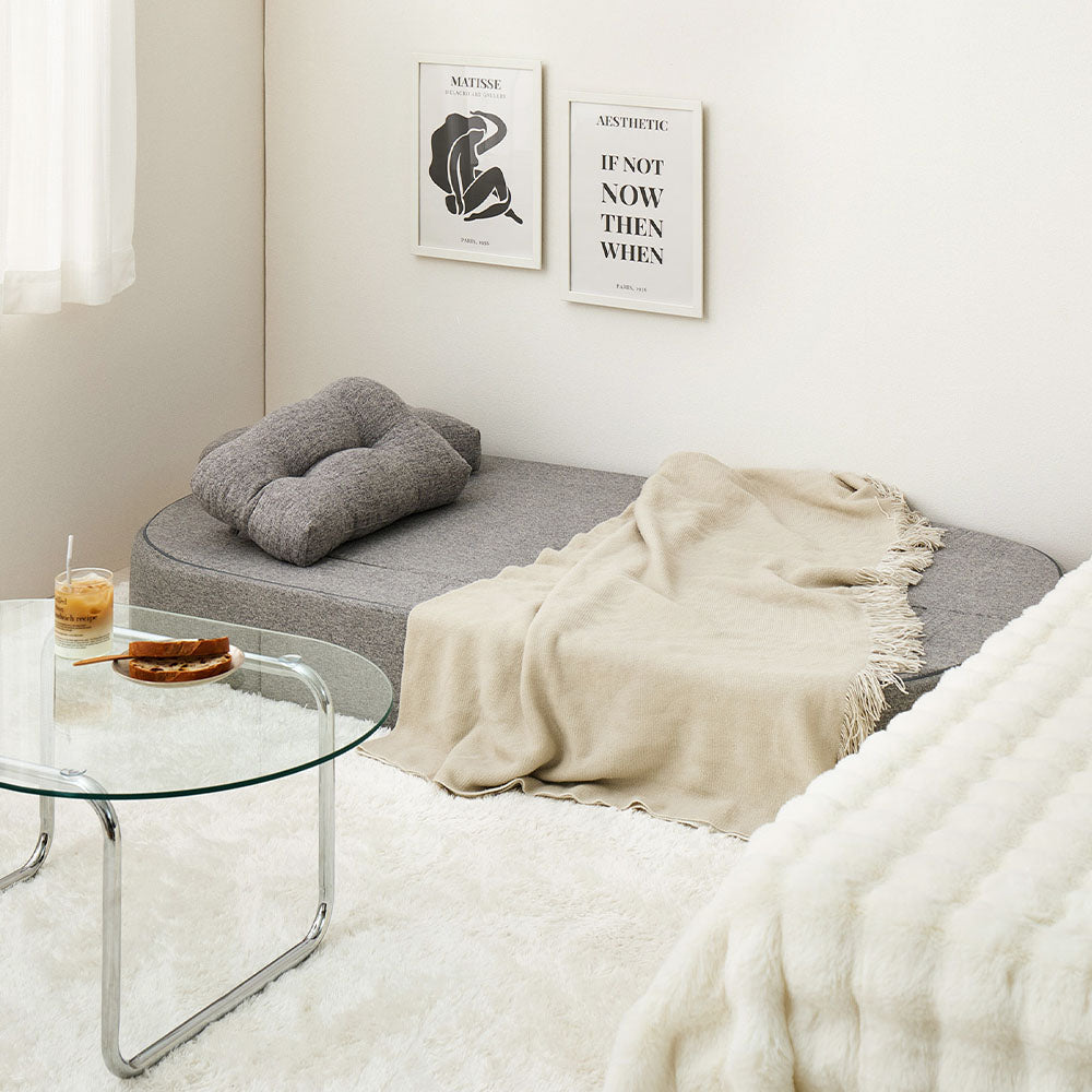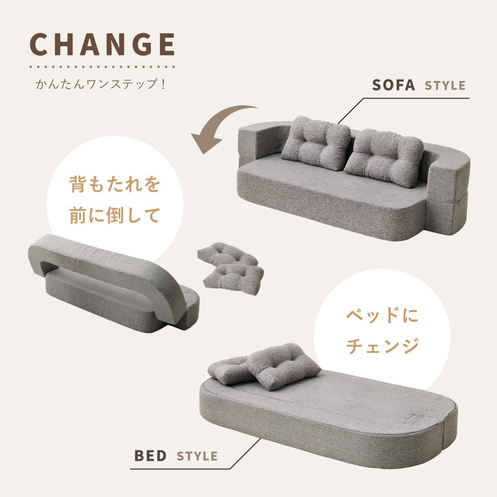 丸みのあるかわいらしいデザインのフロアソファ。ウレタンの絶妙な弾力と柔らかさで、座り心地も寝心地も抜群!ソファにもベッドにもなる2WAYデザインで、ワンルームやひとり暮らしのリラックスタイムにぴったりのアイテムです。